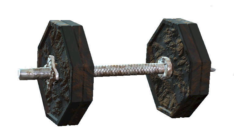 Die Hantel besteht aus einer kurzen Stahlstange mit Bleigewichten an beiden Enden, die zusammen 20 Pfund wiegen. Vor dem Großen Krieg wurden sie häufig für Workouts und Bodybuilding verwendet. Sie kann nicht zur Steigerung der Stärke eingesetzt werden, sondern lediglich verkauft oder verschrottet werden.