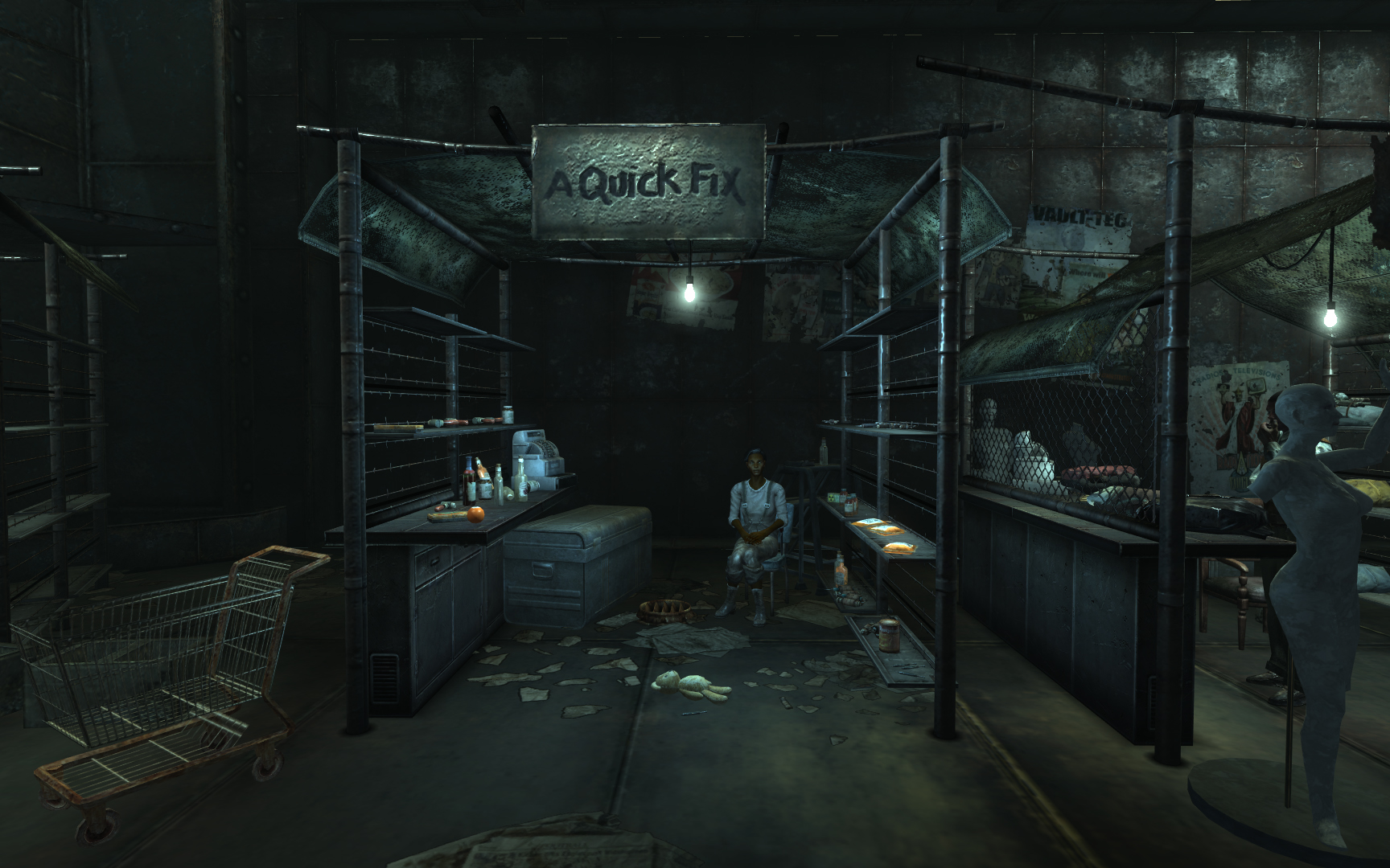 Das Quick Fix ist ein kleiner Marktstand, der sich innerhalb des Marktplatzes von Rivet City befindet. Er besteht aus Regalen an beiden Seiten und einer Registrierkasse links, die auf einem Tresen steht. Hinten befinden sich eine große Metallkiste und ein Stuhl.