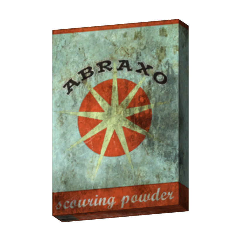 Das Abraxo-Putzmittel ist ein von Abraxodyne Chemical hergestelltes Reinigungsmittel aus der Zeit vor dem Großen Krieg, das auch 200 Jahre nach dem Krieg noch in der Mojave-Wüste zu finden ist.