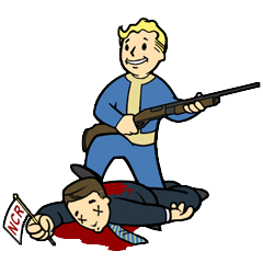 Hinweis : Das Ziehen einer Waffe in der Nähe des Besucherzentrums und nach Ankunft des Präsidenten führt dazu, dass der Präsident und NCR so reagieren, als ob er angegriffen worden wäre, selbst wenn der Kurier versteckt ist und nicht angegriffen hat. Die NCR wird jedoch nicht feindselig, es sei denn, sie durchschauen die Verkleidung des Kuriers.