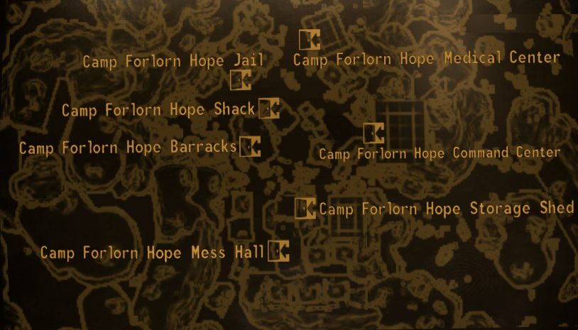 Camp Forlorn Hope erscheint nur in Fallout: New Vegas Fallout: New Vegas.