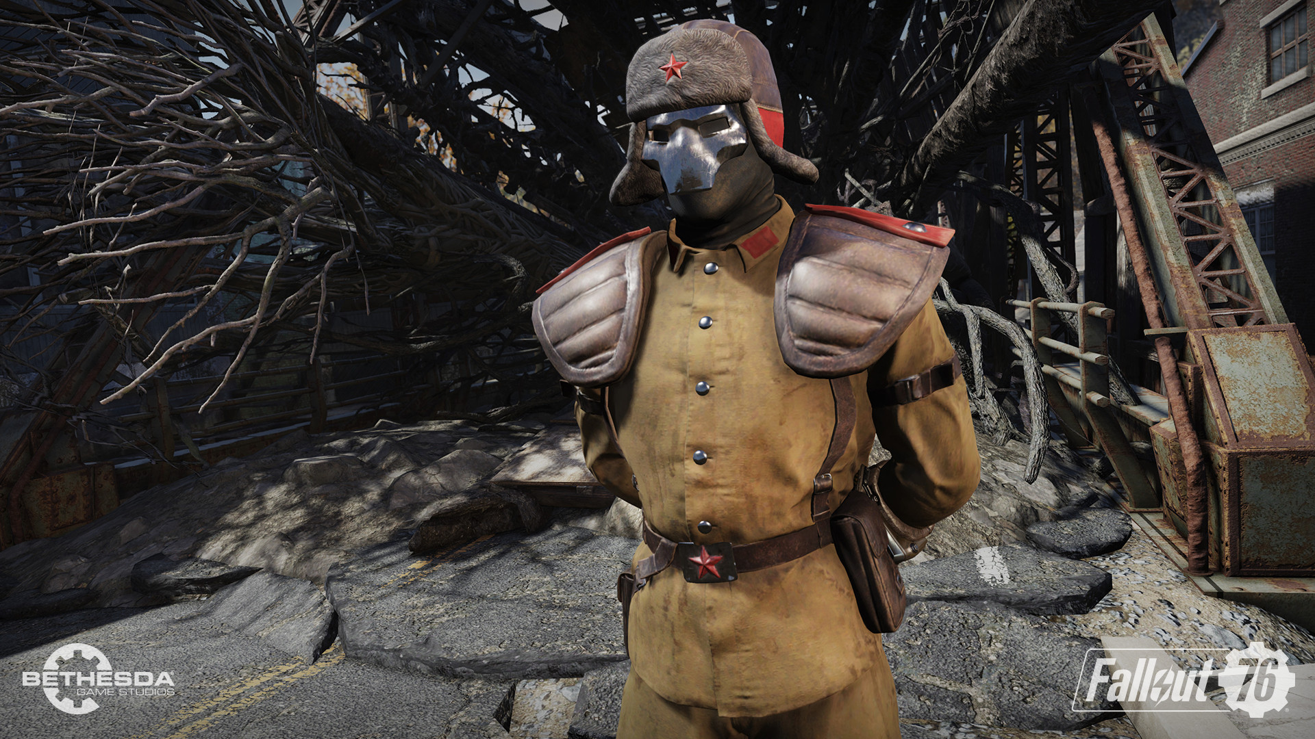 | Diese Datei wurde in dem Video-Spiel Fallout 76 aufgenommen oder stammt von Webseiten, die erstellt und im Besitz von Bethesda Softworks sind, deren Urheberrecht von Bethesda Softworks beansprucht wird. Alle im Bild vorhandenen Warenzeichen und eingetragenen Warenzeichen sind Eigentum von Bethesda Softworks. Die Verwendung von Bildern in Artikeln zur Veranschaulichung des Themas der fraglichen Bilder gilt nach dem US-amerikanischen Urheberrechtsgesetz als fair use, da eine solche Darstellung das Recht des Urheberrechtsinhabers, das urheberrechtlich geschützte Material zu verkaufen, nicht wesentlich beeinträchtigt und in diesem Zusammenhang nicht dazu verwendet wird, Gewinn zu erzielen. |
