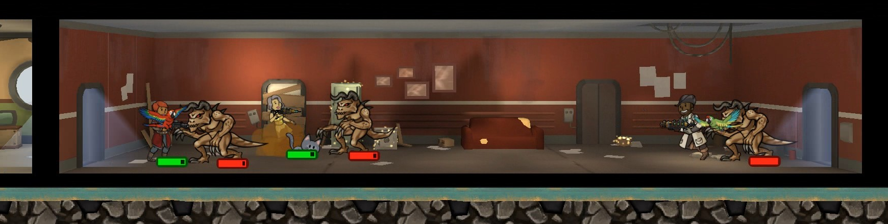 | Diese Datei stammt aus dem Video-Spiel Fallout Shelter oder von Webseiten, die von Bethesda Softworks erstellt wurden und deren Urheberrechte bei Bethesda Softworks liegen, oder wurde von dieser für Werbezwecke an die Presse abgegeben. Alle im Bild enthaltenen Marken und eingetragenen Marken sind Eigentum von Bethesda Softworks. Es wird davon ausgegangen, dass die Verwendung der Bilder zur Illustration von Artikeln, die das Thema der fraglichen Bilder betreffen, als faire Verwendung im Sinne des US-amerikanischen Urheberrechtsgesetzes gilt, da eine solche Darstellung das Recht des Urheberrechtsinhabers zum Verkauf des urheberrechtlich geschützten Materials nicht wesentlich einschränkt und in diesem Zusammenhang nicht dazu verwendet wird, Gewinn zu erzielen. |