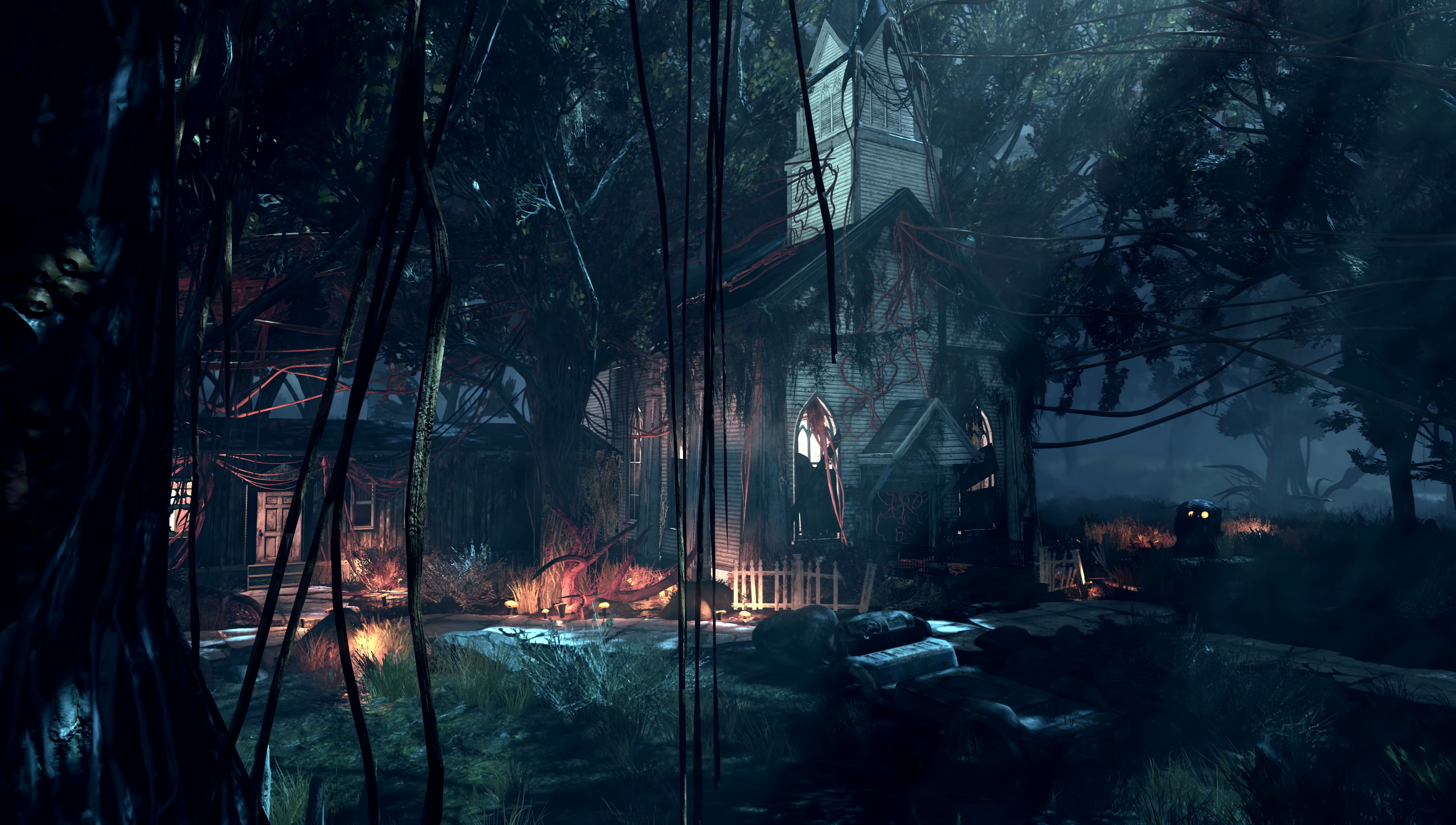 In 2103, a group of villagers settled the abandoned Treehouse Village under the leadership of Jennie Brown, renaming it the Retreat. The raider Dagger and her goons made their headquarters in a nearby cave, and began demanding tribute from the village on the threat of death. In the south, the Followers of the Winged One cult constructed a towering primitivist stronghold called Moth-Home. At a nearby camp dubbed Blake's Offering, cultists live among unusual strangler vine formations. Additionally, crashed astronaut Sofia Daguerre was found in a bunker by the Vault Dwellers.