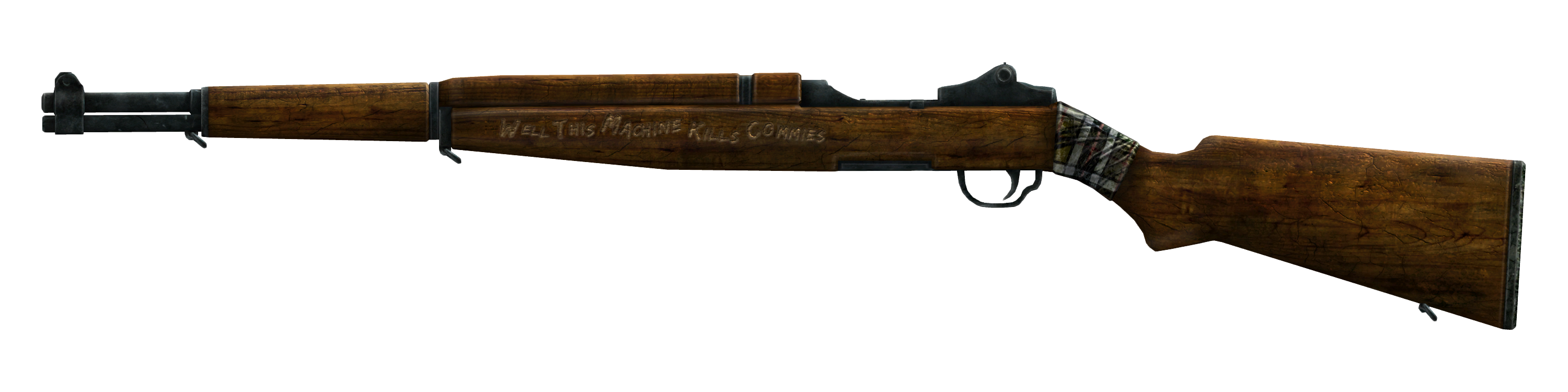 Diese Maschine ist ein einzigartiges Kampfgewehr, welches .308 Munition verschießt. Der Munitionsclip fasst 8 Patronen. Auf der linken Seite des Gewehrs steht in englischer Schrift: "Well This Machine Kills Commies", was auf deutsch so viel heißt wie "Nun, diese Maschine tötet Kommunisten". Dies ist eine Anspielung auf den Folkmusiker Woodie Guthrie, auf dessen Gitarre "This Machine Kills Facists" zu lesen ist. Das Gewehr ist auf mittleren bis längeren Distanzen wirksam. Aufgrund der großen Streuung ist sie jedoch für den Fernkampf häufig ungeeignet.