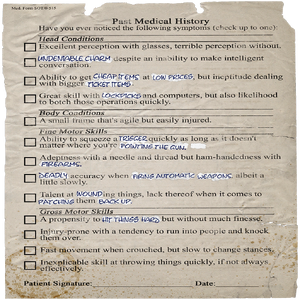 - In den Spieldaten wurde ein historisch anmutendes medizinisches Formular gefunden, das scheinbar vom Spieler während der Charaktererstellung ausgefüllt werden sollte. Das Formular zeigt z.T andere Merkmale an, als schließlich im Spiel gelandet sind, z.B. nicht das Merkmal Wildes Ödland