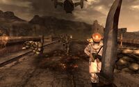 Arcade wird außerdem den Kurier fragen ob er ebenfalls bei der Schlacht teilnehmen soll. Bejaht man dies, holt er sich die alte Powerrüstung seines Vaters und zieht sich bis zum Kampf zurück. Verneint man dies, gibt Gannon dem Spieler die alte Powerrüstung seines Vaters und zieht sich zu den Anhängern der Apokalypse in Freeside zurück.