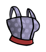 Das Outfit ist ein ärmelloses, lila Kleid mit rotem Gürtel und roten Schuhen. Es bietet dem Träger je einen Punkt auf Stärke und Intelligenz. Es kann nur von weiblichen Bewohnern getragen werden.