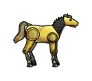 Eine goldenes, mechanisches Spielzeug-Pferd entworfen von Wilson Automatoys.