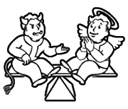 • Es ist generell nicht ratsam, das Extra zu wählen, da man sehr leicht anderweitig neutrales Karma erlangen kann. Als böser Charakter kann man sein Karma verbessern, indem man an die Kirche von Saint Monica oder die Kirche der Kinder des Atoms spendet. Um als guter Charakter sein Karma zu verschlechtern, kann man hingegen Sachen stehlen oder wiederholt an rot markierte Terminals gehen.