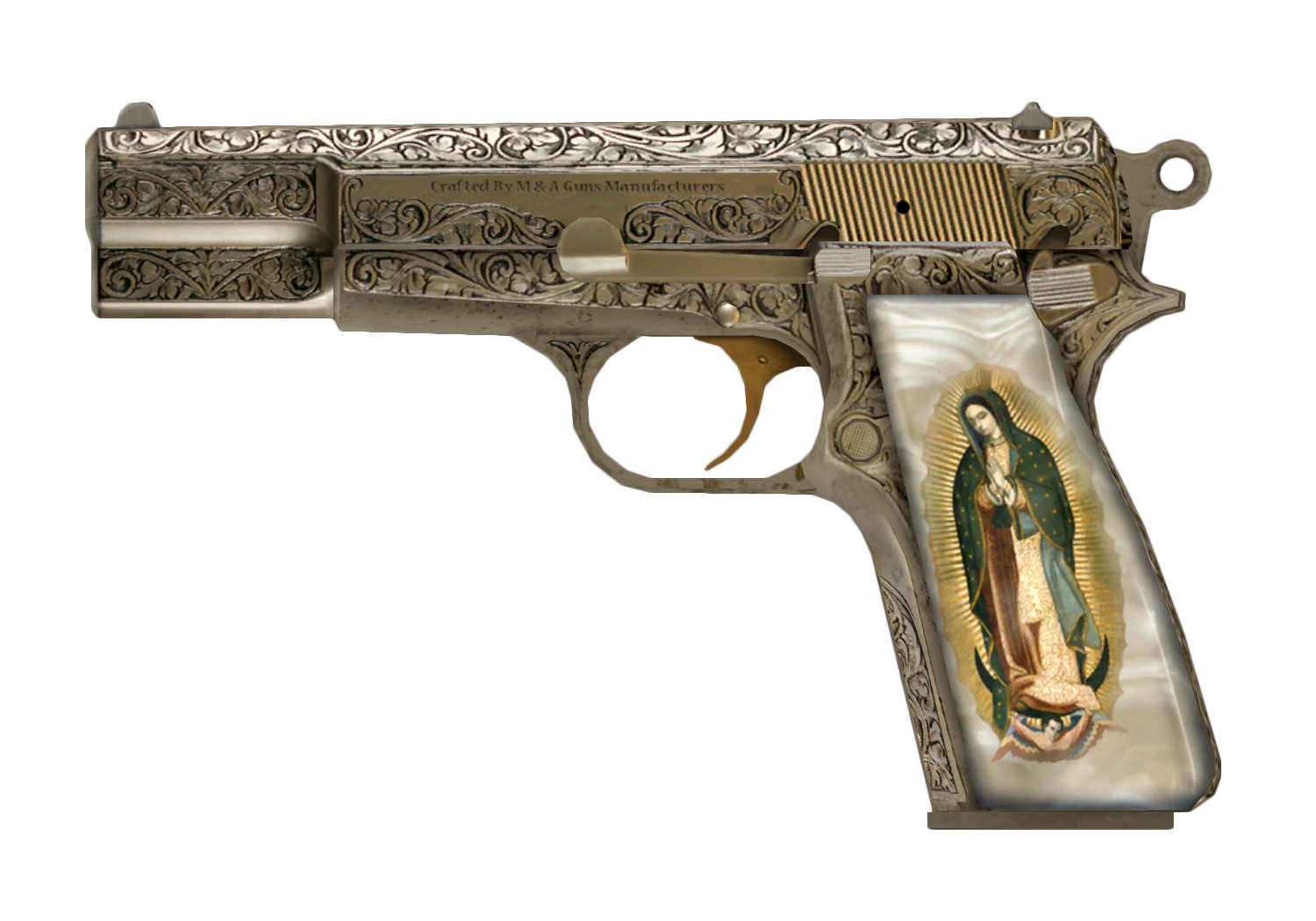 Auf den aus Elfenbein bestehenden Griffeinlagen der Waffe ist ein Bild von Maria Magdalena, einer bekannten Figur aus der katholischen Religion, enthalten. Die komplette Pistole ist mit Elfenbein und Silber verziert. Jedoch kann man sie nicht modifizieren. Maria ist einigermaßen hilfreich, wenn man die Fertigkeit Schleichen auf Stufe 50 oder mehr hat.