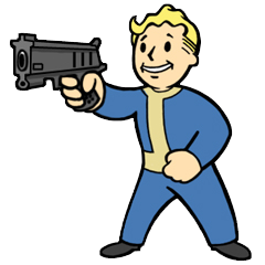 • Auf dem Bild des Erfolges hält der Vault Boy eine 10-mm-Pistole. Das ist eine der ersten, wenn nicht sogar die erste Waffe, die der Spieler in den Fallout-Spielen bekommt.