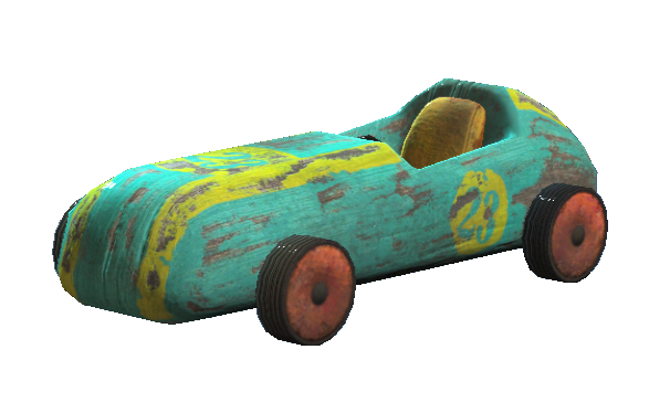 Derby-winning toy car - A unique variant stored in the Jamaica Plain Town Hall basement treasure room. It can be scrapped for the same components as other toy cars but it is worth 16 caps.