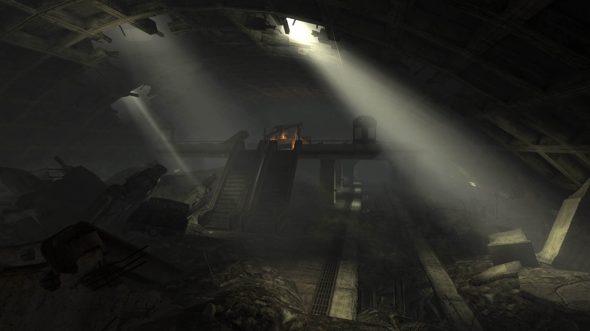 - In der südwestlichen Ecke der Bahnstation, westlich des Chevy Chase-Ausgangs, gibt es abnormal große Metallkisten, die normalerweise zufällige Items enthalten. Zwei dieser Kisten aufeinander gestapelt sind so groß wie der spielbare Charakter.