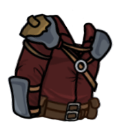 Das Outfit ist eine dunkelrote Variante des Outfits Lederrüstung mit Brille. Es ist ein männliches Outfit, das die Stärke und Beweglichkeit des Trägers um 2 und sein Glück um 1.