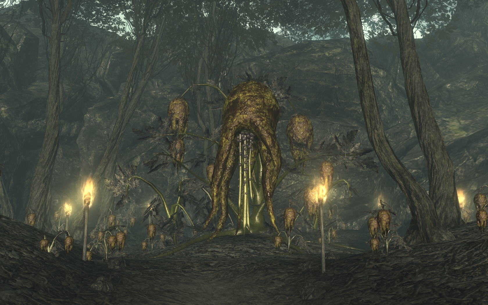 Auf dem Weg durch das Heilige Moor trifft man auf einige Sumpflurks und Mirelurk-Jäger. Ganz hinten im Moor befindet sich die Mutter Punga. Die Punga-Früchte sollten vor den Samen eingesammelt werden. Wenn man die Samen aufnimmt, wird Gas versprüht und man wird bewusstlos. Wenn man wieder erwacht, erlebt man eine bewusstseinserweiternde Halluzination. Auf dem Weg aus dem Moor findet man gigantische Wackelpuppen von "Schmault-Tec" (eine Vault-Tec-Parodie), auf deren Sockel Nachrichten stehen, die den Einsamen Wanderer verspotten und sich über seine Ängste lustig machen. Als Halluzinationen erscheinen eine große rote Säge, Nuka-Cola Quantums, die vom Himmel fallen und beim Explodieren Baby-Geräusche machen, eine Nadel mit Stichbewegungen, Ghule die auf den Spieler zustürmen aber ihn nicht verletzen und das Skelett der Mutter des Einsamen Wanderers, mit dem man aber nicht interagieren kann. Im Wasser schwimmen die Leichen von mehreren Charakteren aus dem Ödland der Hauptstadt, darunter Lucas Simms, Amata, Moira Brown, der Älteste Lyons und ein unbenannter Megaton-Siedler. Wenn man sie anklickt, verschwinden sie, jedoch kann man sie hin und herziehen. Am Ende findet man eine größere Version der Atombombe aus Megaton. Vor der Bombe steht Mister Börk, eine Parodie auf Mr. Burke, hinter der Bombe kann man das Washington Monument sehen. Mr. Börk warnt davor, sich nach der OP schnell zu bewegen, danach explodiert die Bombe und man befindet sich vor dem Eingang zum Moor.